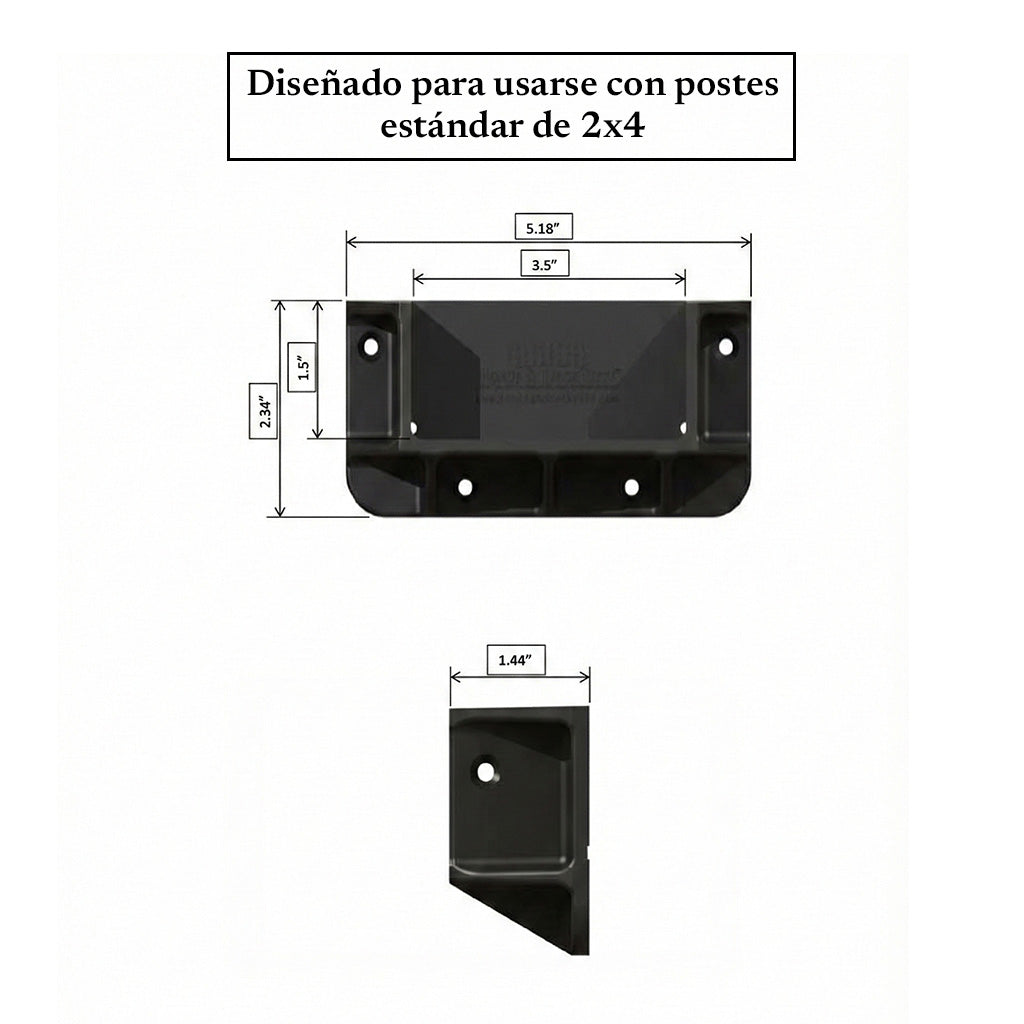 Soportes para cercas o muros de privacidad – compatibles con travesaños estándar 2 x 4 (medidas: 1 ½” x 3 ½”), fabricados en polipropileno negro reforzado (paquete de 48 piezas)